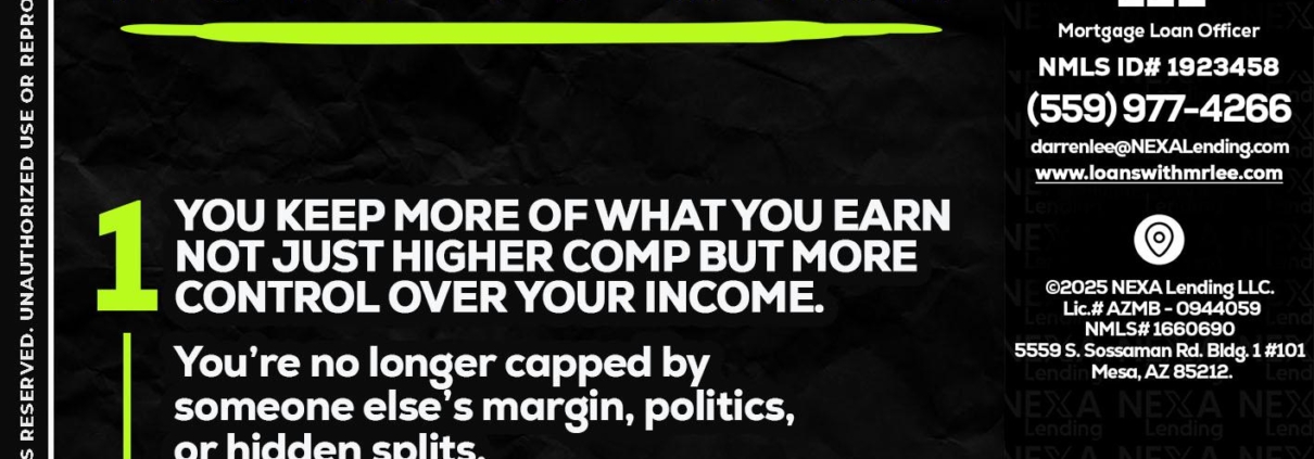 Hi, my name is Darren Lee. I’m a Loan Officer with NEXA Lending LLC., offering personalized mortgage solutions, fast customized quotes, great rates and service with integrity.