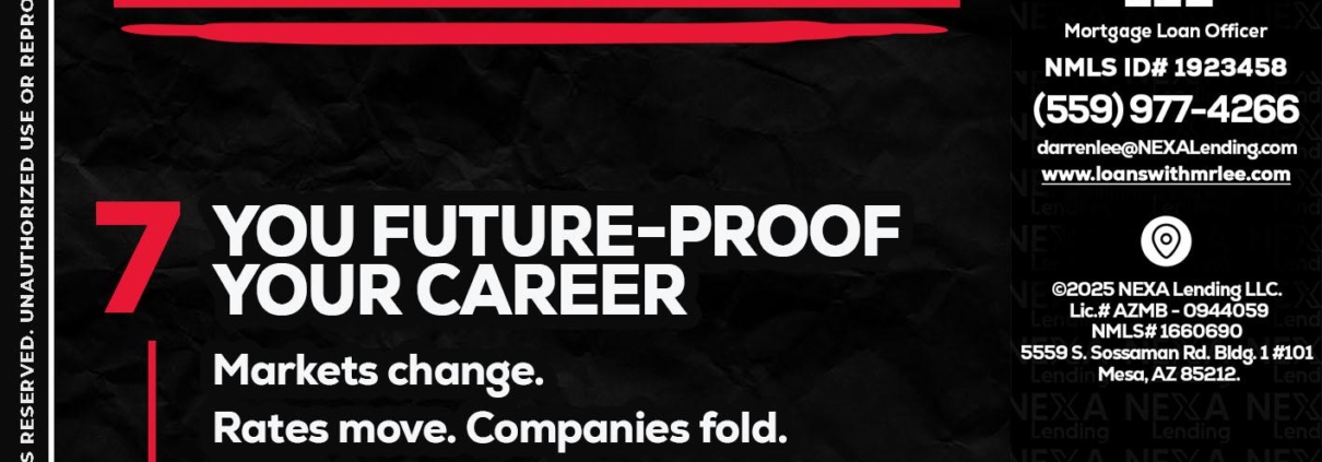 7 THINGS (7) - Darren Lee -Mortgage Loan OfficerHi, my name is Darren Lee. I’m a Loan Officer with NEXA Lending LLC., offering personalized mortgage solutions, fast customized quotes, great rates and service with integrity.