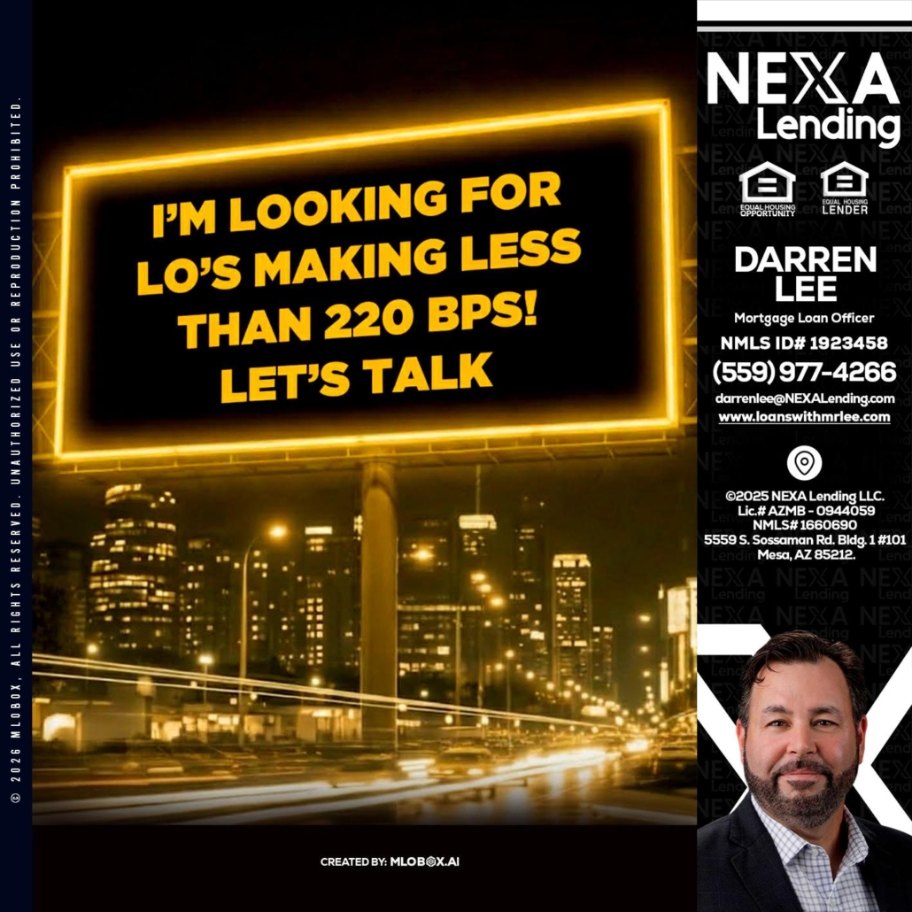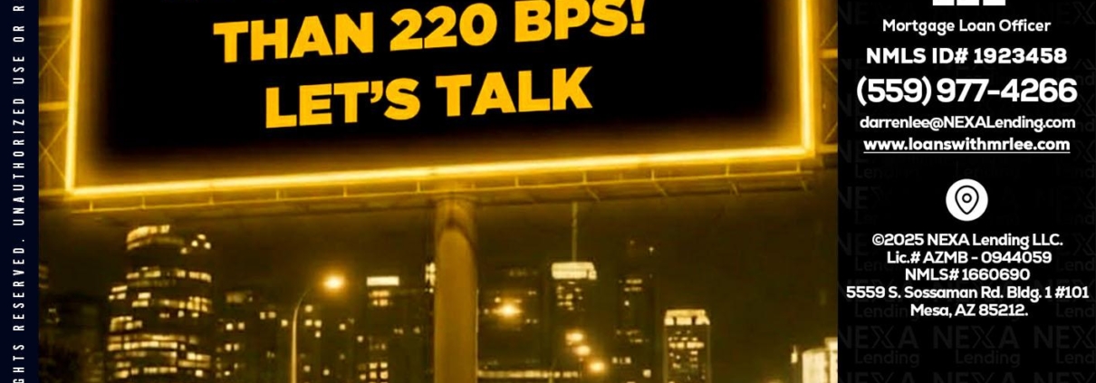Hi, my name is Darren Lee. I’m a Loan Officer with NEXA Lending LLC., offering personalized mortgage solutions, fast customized quotes, great rates and service with integrity.