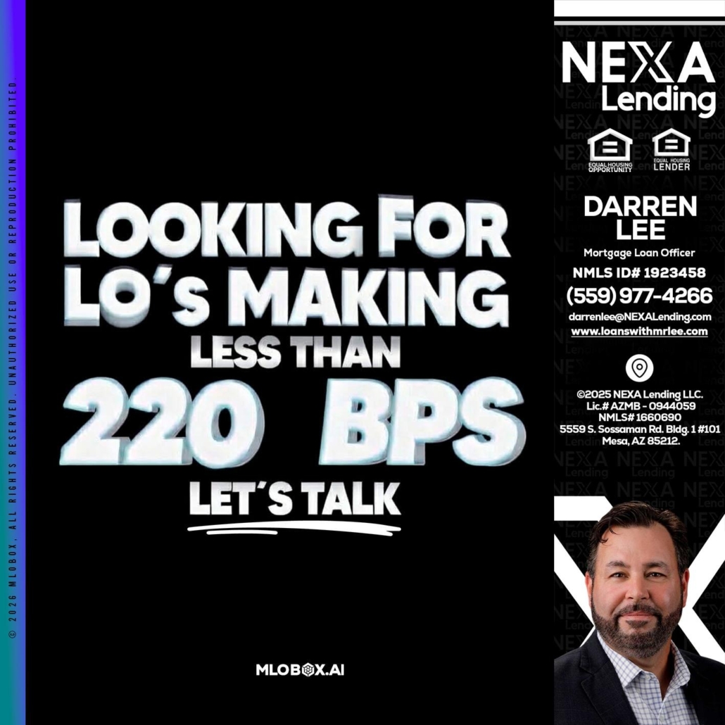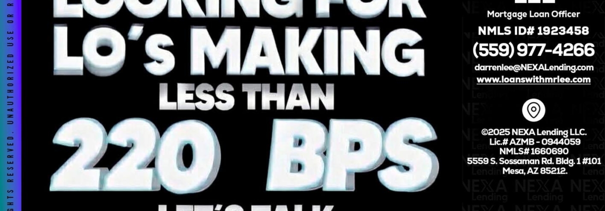 Hi, my name is Darren Lee. I’m a Loan Officer with NEXA Lending LLC., offering personalized mortgage solutions, fast customized quotes, great rates and service with integrity.