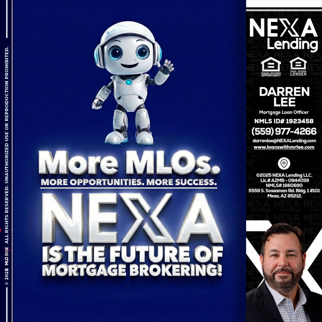 Hi, my name is Darren Lee. I’m a Loan Officer with NEXA Lending LLC., offering personalized mortgage solutions, fast customized quotes, great rates and service with integrity.