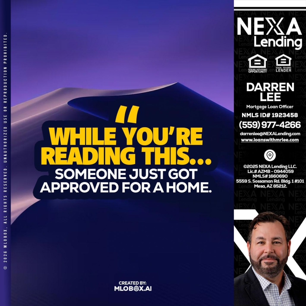 Hi, my name is Darren Lee. I’m a Loan Officer with NEXA Lending LLC., offering personalized mortgage solutions, fast customized quotes, great rates and service with integrity.